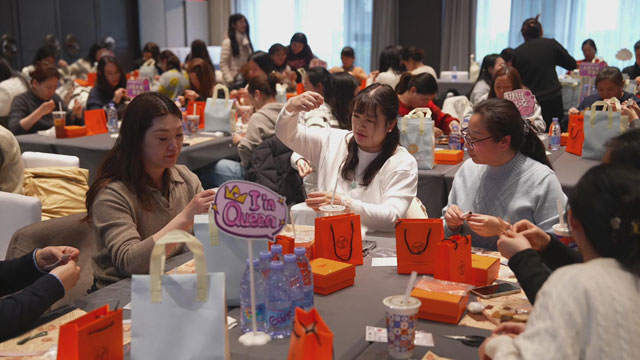 创作过程中,现场不时响起欢声笑语,有的女员工专注凝神、细细缝制,眼神里满是认真;有的女员工一边交流工作中的趣事、生活中的美好,一边互相切磋手工技巧,氛围轻松而热烈;还有的女员工不时拿起手机,记录下自己的创作瞬间,或是拍下半成品的模样,分享这份动手的快乐。手工老师穿梭在人群中,耐心解答大家的疑问,手把手指导大家调整针法、完善造型,及时帮助遇到困难的女员工,确保每一位参与活动的女员工都能顺利完成属于自己的手工小马。期间,主办方还贴心为大家提供茶歇服务,大家在创作间隙,品尝着精致的糕点、饮品,舒缓身心、补充能量,短暂放下工作的忙碌,享受这份专属的惬意时光。